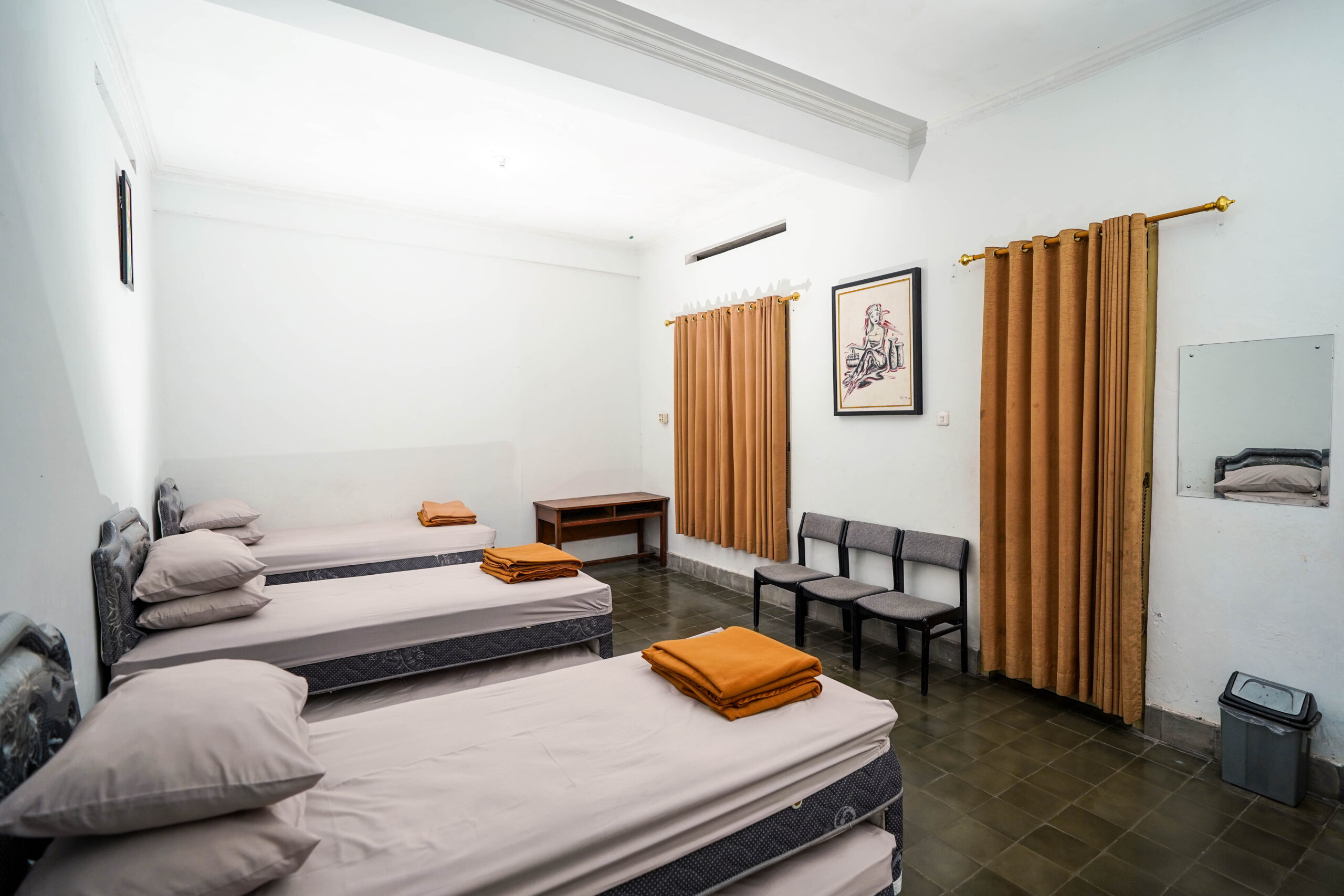 Wisma ini terdiri dari 3 (tiga) kamar connecting dengan kelengkapan fasilitas berupa Air panas, dan halaman yang luas. Cocok untuk Anda yang ingin menginap bersama keluarga dan saudara.