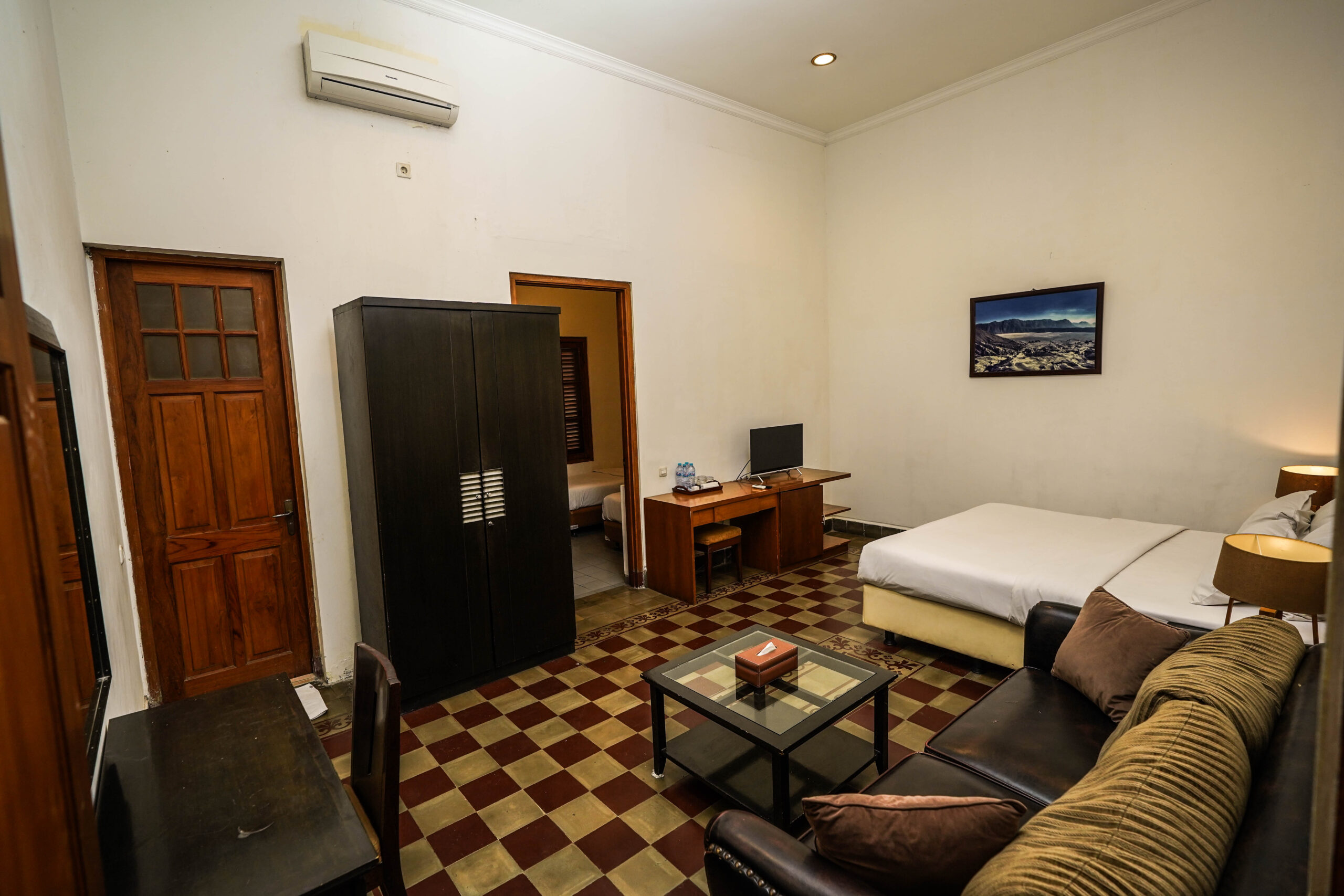 Kamar ini terdiri dari 2 (dua) kamar connecting dengan kelengkapan fasilitas berupa 1 (satu) tempat tidur Queen Size dan 2 (dua) tempat tidur single. Cocok untuk Anda yang ingin menginap bersama keluarga dan saudara.