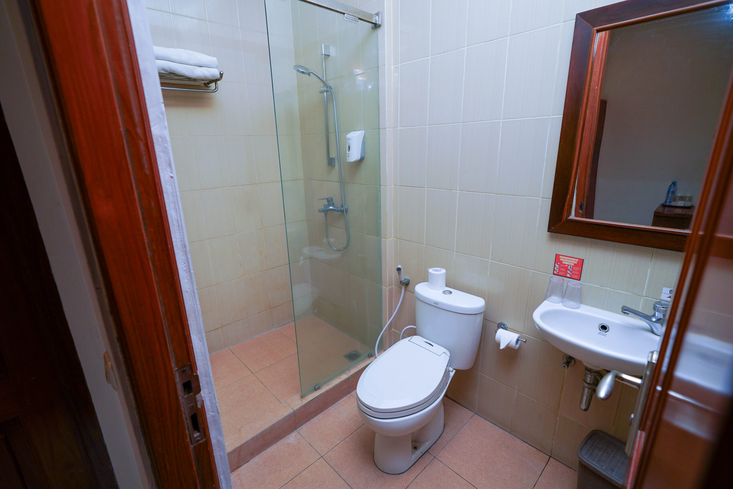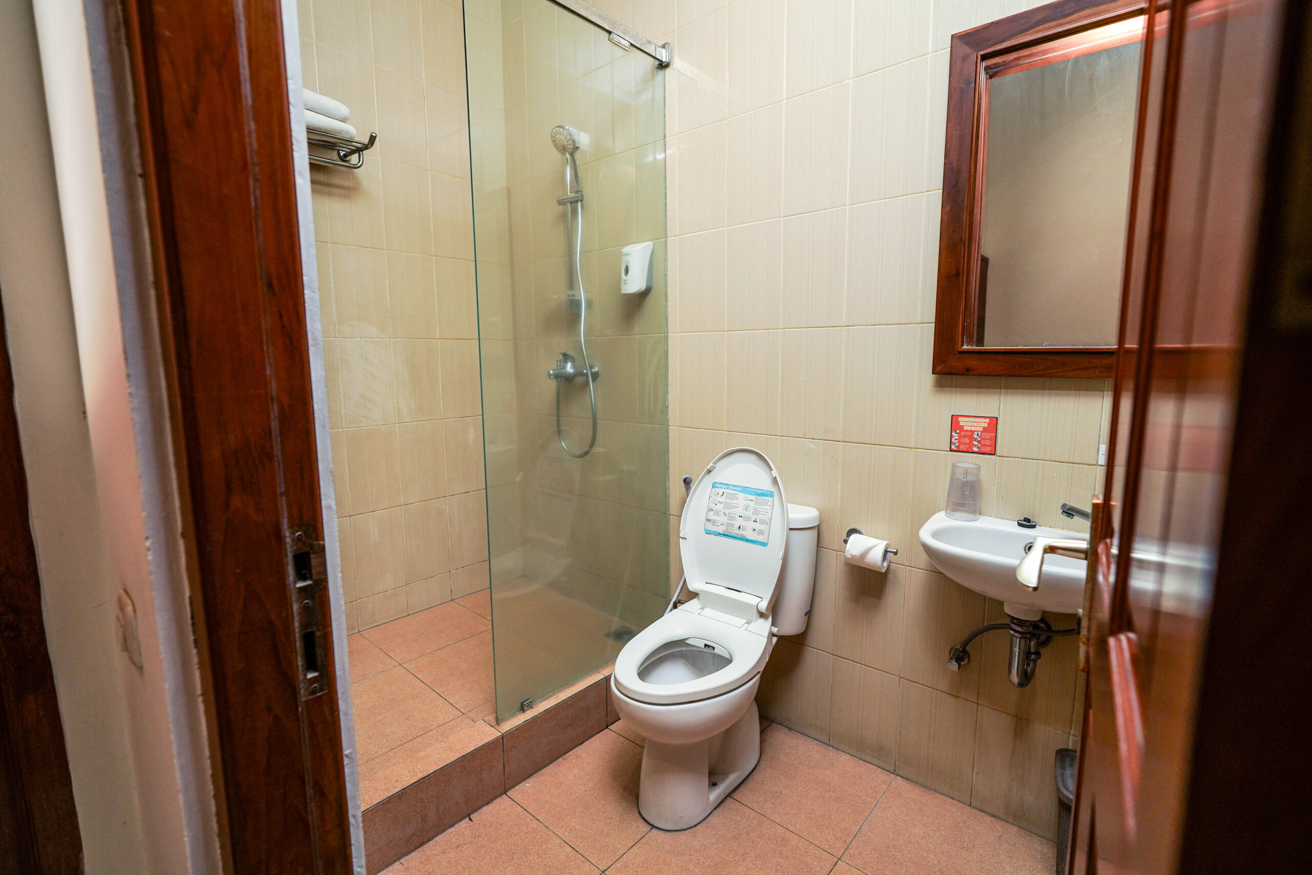 Kamar dengan kelengkapan fasilitas berupa tempat tidur Queen size atau twin, AC, kamar mandi dengan shower air panas dan air dingin, TV dan lemari pakaian.